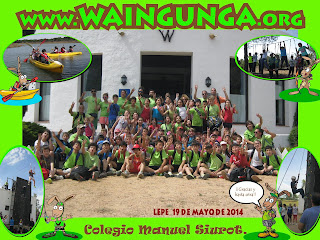 El pasado lunes 19 de mayo el segundo ciclo del CEIP Manuel Siurot emprendimos el viaje a la naturaleza y la aventura visitando Waingunga (centro de la naturaleza en Lepe). Disfrutamos de un día distinto de colegio donde la convivencia, los amigos, las situaciones informales tomaban protagonismo bajo la organizaciñon de actividades en plena naturaleza. Con la mochila llena de alimentos, ropa, agua y con muchas ganas e ilusión partimos para pasar 9 horas de auténtica diversión. Así, en la llegada nos recibian con baile y buen ambiente que hacía que entráramos pronto en calor para luego tener una mañana llena de adrenalina con escalada, habilidades, tiro con arco, tirolina y canoas en un precioso embalse.